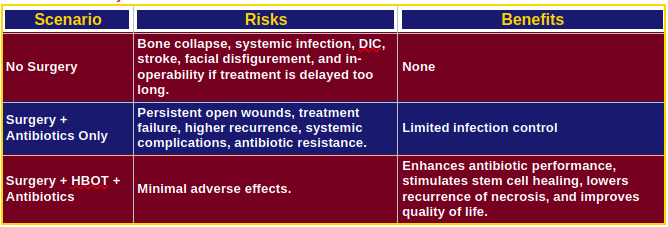 Timely HBOT-supported surgical intervention is not optional—it is life-saving. Donor support ensures access to this evidence-based care, aiding patients in their survival, restoring function, and reducing the risk of severe health complications.
